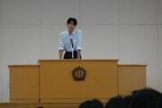 2学期の始業式に当たり、各学年から代表3名が抱負を述べてくれました。生活面、学習面それぞれに、自分を見つめて伸ばしていこうと思う点を真摯に語る姿が見られました。ほかに、合唱コンクールの実行委員の紹介もなされ、16日からの強調旬間に向かっていきます。