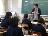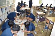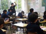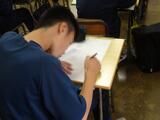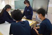 1組(古典)は『枕草子』の文章が表す情景を考えてまとめていました。一人一人が考えをまとめた後、先生が促すとすすんで周りの生徒と話し合う姿も見られました。2組(数学)は変化の割合をグラフを用いて考えていました。先生が説明しながら電子黒板に例を示すと、生徒は各自のタブレット端末に直接書き込むなどして考えていました。3組(英語)は「AをBと呼ぶ」の文の学習でした。先生の指示で様々な語を言い換えながら、声に出して反復練習をしていました。4組(美術)は自教室で平面構成の制作をしていました。先生によって作業の手順がしっかり黒板に書かれてあり、生徒は各自のペースで集中して取り組んでいました。この調子でがんばれ、2年生!