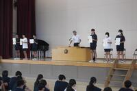 昨日の雨は激しかったですね。被害はなかったでしょうか? さあ、始まりました。全校朝会(表彰、新しいALTアンドリュー先生の新任式)からスタート。生活委員長も言っていましたが、整列は早くてとてもよかったと思います。もちろん、話を聞く態度も。全体的にいいスタートが切れました。夏休みは終わりました。いかがでしたか。もう戻ることはできません。「頑張るときはいつも今」。さあ、今から自分の目標に向けて頑張りましょう!3年生は明日実力テスト。来週月曜日、火曜日は第2回定期テスト。ますは、テストに向けて授業から家庭学習まで全力で取り組みましょう。ファイトです。