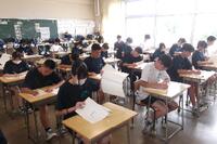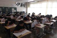 3年生は1限から5限まで実力テストでした。当たり前ですが、もの凄い緊張感、集中力。教室に入るのにドキドキしました。写真は4限の社会。図、グラフ、資料を読み込み、頭をフル回転させて答えなければならない問題が多く、結構難しかったのではないでしょうか。英語も、長文の分量が多く、また、表現の問題も多く、これまた苦戦したのではないでしょうか。本番の入試を意識した勉強方法を考えなければなりませんね。「どうしたらいいか」「何をしたらいいのか」・・・、悩んだら、困ったら、教科担当の先生にどんどん聞きましょう。とにかく、すぐに動き出しましょう。あっという間に、本当にあっという間に3月は来ます。がんばれ、3年生!