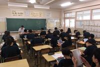 1組「英語」:最初、リスニング。結構難しい問題でしたが、みんなできていてビックリ。その後、What time do you ~? を使って、先生やペアの1日の生活時間を尋ねました。2組「数学」:いろいろな一次方程式。カッコが含まれていたり、小数、分数が含まれていたり・・・。全体的に苦戦している感じがしましたが、なんとか解こうと頑張っていました。3組「国語」:テスト前ということもあり、ワーク、プリント、タブレット問題への取組。一人一人、自分の計画にしたがって、自分のペースで学習を進めていました。どのクラスも、学習に向かう姿勢が素晴らしかったです。テストに向けて、頑張ってください!