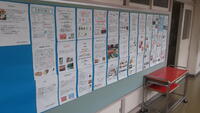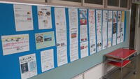 1年生は総合的な学習で「地域貢献活動」と「私たちのまち五泉紹介」の2本柱で学習を進めてきました。地域のために何ができるか検討した結果、粟島公園清掃をすることになっったのですが、先週残念ながら雨で延期、そして今週も雨のために中止。なんということでしょう。でも五泉の紹介ポスターは完成。昨日、廊下に掲示しました。いやー、キレイ。色彩が美しい。キャッチコピーがすばらしい!見ていて、心が和みます。そういえば、2Fトイレにも心が和むオブジェが。長雨で心までジメジメしていましたが、一気に晴れました。