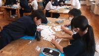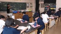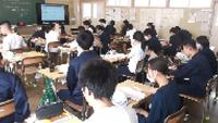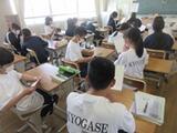 1組:理科 「デンプン水溶液の濾過」 ちょうど、濾過している時にお邪魔しました。濾紙にたまったデンプンを見た時「ウォー」という歓声が。実験の後片付けがすばらしかった。どの班もみんなで協力してあっという間に終了。床にこぼれた水も丁寧にぞうきんがけしている人もいました。2組:家庭科 「まつり縫い」 中学時代(43年前)裁縫は好きでしたが、この「まつり縫い」は苦戦した記憶があります。縫い方を一通り終わると個人の作品作りに入ります。完成が楽しみです。3組:国語「オオカミを見る目」 オオカミが神のように敬われていた時代があったなんて・・・。それなのに絶滅・・・。難しい内容も、段落毎にみんなで要点を押さえながら丁寧に読むとスッと頭に入ってきますね。