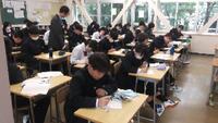 明日から2日間、第1回定期テストがスタートします。写真は1年生。朝の学年タイム。普段は読書ですが、今週は中央委員が作成した問題に取り組みました。真剣な顔、顔、顔。わからない問題を先生に聞いている生徒もいました。1年生にとっては初めての定期テスト。ドキドキしているのではないでしょうか。努力してきたことが必ずしも実を結ぶとは限りませんが、思い通りの点数をとるにはやはり努力するしかありませんね。まだ努力できる時間はたくさんあります。最後の最後までがんばってください!