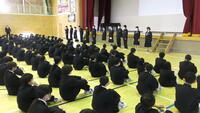 今朝、今年度初めての生徒朝会がありました。生徒会本部のみなさんの自己紹介、5月10日における生徒総会に向けての話でした。本部のみなさんの堂々とした話しぶりにはビックリしました。さすがです。それと、今までで一番整列が早かったですね。