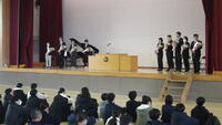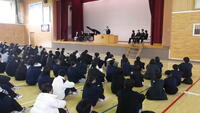 2学期終業式が行われました。学期の反省と次年度の抱負を1年生代表Tさん、2年生代表Iさんが発表しました。二人とも自己を振り返り、これから何をどうすべきかを力強く堂々と述べていました。聞いていて自分も頑張ろうと思った人が多かったと思います。お疲れ様でした。寒い中でしたが、式の最後まで集中力を切らすことなく聞く態度は、横から見ていて立派だと思いました。さあ、新年度が始まります。今日から、何事にも全力で取り組んでいきましょう。「頑張るときはいつも今」です。