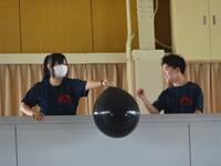 今日の生徒朝会では、9月の大運動会に向けて生徒の実行委員会の組織の紹介と軍団の色の抽選会が行われました。実行委員会では、この抽選に向け趣向を凝らし、今年は大きな風船の中にある紙吹雪の色で発表する形にしました。普段とは向きを変えて、体育館後方のギャラリーの上に実行委員と各学級の代表者(2年生は3グループに分けたそれぞれの代表者)が上がりました。まずはインタビュー。「どの色(の軍団)になりたいですか」「●です。絶対に獲って優勝したいです!」などと意気込みを語り、いよいよ風船割りです。全校が見守る中、学年ごとに3軍の色分けが決まりました。