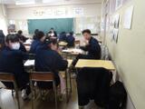 来週第3回定期テストを予定しています。6限、3年生の教室では、各自が課題を決めてテストに向けた自主学習を進めていました。一人で黙々と問題に取り組んだり、ノートにポイントを整理したりする生徒。学級担任のところに、質問に集まる生徒。タブレット端末で、過去の授業でまとめたポイントを確認したり、AIドリルの問題に取り組んだりする生徒。グループで問題を出し合ったり、話合いで課題を解決しようとする生徒・・・。様々な様子ですが、みな真剣にがんばっていました。進路実現に向けても、このテストの大切さがわかっている中、カメラを向けるとニッコリ&ピースサインもくれる余裕(?)もあるようですね。すでに公立高校の選抜要項は示されていますし、この週末も私立高校のオープンスクールや説明会が行われます。いろいろなことが並行していますが、目前の課題に果敢に立ち向かっていってください。以前も紹介しましたが、これこそ「受験は団体戦」です。がんばれ~!