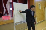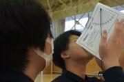 今日は、五泉市教育委員会の担当指導主事様をお招きし、3年生の数学の授業を通して授業づくり、学習指導に関する研修を行いました。公開授業に臨んだ3年生の1学級のみ5限を行い、その授業を全員で参観し、グループ協議等を行いました。今日の課題は、「直接測ることのできない距離や高さをどうやって求めるか」で、相似を利用する学習でした。小学校で学んだ内容を振り返りつつ、体育館の時計の高さや、天井に挟まったボールまでの距離など、グループごとに課題を選んで、小学校の時とは異なる数学の知識を生かしたやり方で解こうとしました。その後教室に戻ってワークシートを活用しながら話合い活動に移りました。担当するO先生の学級では、和やかな雰囲気で対話を進めることができ、与えられた課題の解決に向けて熱心に取り組んでいました。