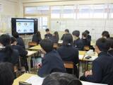 4限は全校で、第2回生徒総会に向けて今年度の生徒会活動の振り返りを行いました。本部、応援団、各専門委員会、各学年委員会の取組の報告書は、各自の学習用タブレット端末に配布されています。これを読み、それぞれの活動についての意見・質問や提案を班で話し合いました。中央委員(学年委員)の進行で、話合い活動を進めていました。画像は1年生の様子です。それぞれの場で、先輩になる日が近付いています。中学校生活にもすっかり慣れ、自分たちの手で活動を進める様子が見られました。